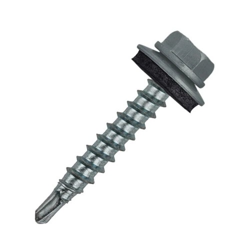 Саморез кровельный 4,8х35 мм (RAL 7005). Изготовлен из стали С1022 с цинковым покрытием, что гарантирует устойчивость к коррозии. Пресс-шайба с EPDM прокладкой обеспечивает герметичное соединение, а порошковая окраска головки и шайбы в цвет позволяет подобрать саморезы в тон вашей кровли. Идеально подходят для крепления металлочерепицы и профнастила к деревянному каркасу.