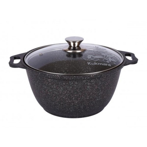 Кастрюля Kukmara изготовлена из литого алюминия, покрыта с внутренней и с внешней стороны - Объём 2 л.- Крышка Жаропрочное стекло, с ручкой из нержавеющей стали.  Использование в посудомоечной машине- Да (согласно инструкции по эксплуатации). Использование в духовом шкафу- Да (согласно инструкции по эксплуатации)- Материал корпуса Литой алюминий- Толщина дна до 6 мм- Диаметр дна 14,5 см- Диаметр изделия 20 см- Толщина бортов 4,5 мм- Высота бортов 10,5 см
